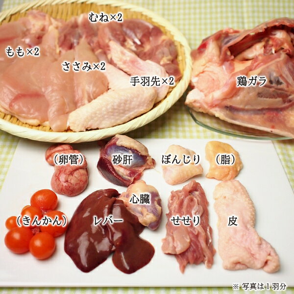 比内地鶏 中型 2羽分 生肉(正肉 約2kg・もつ 約300g・ガラ 約1kg) 秋田県大仙市産 むね/もも/ささみ/せせり/手羽先/皮/ぼんじり/ハツ/レバー/砂肝/ガラ 送料無料