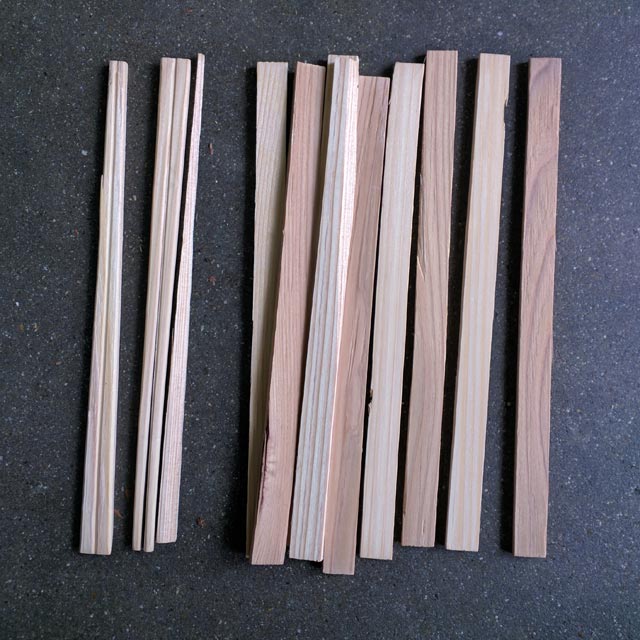 画像のような半製品が 7 割程度、わりばしのB品が 3 割程度混じっています。