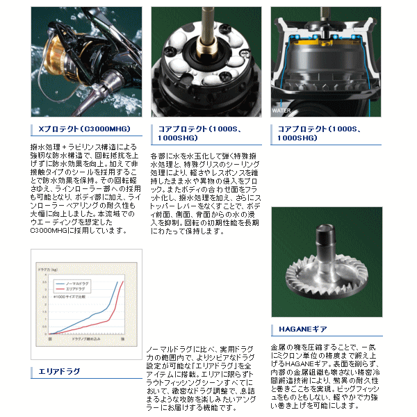 1000Sはエリアのオールラウンダー、1000SHGはエリアにおいて巻き感度を向上させ、天然河川では速い流れに負けないリトリーブを可能にします。