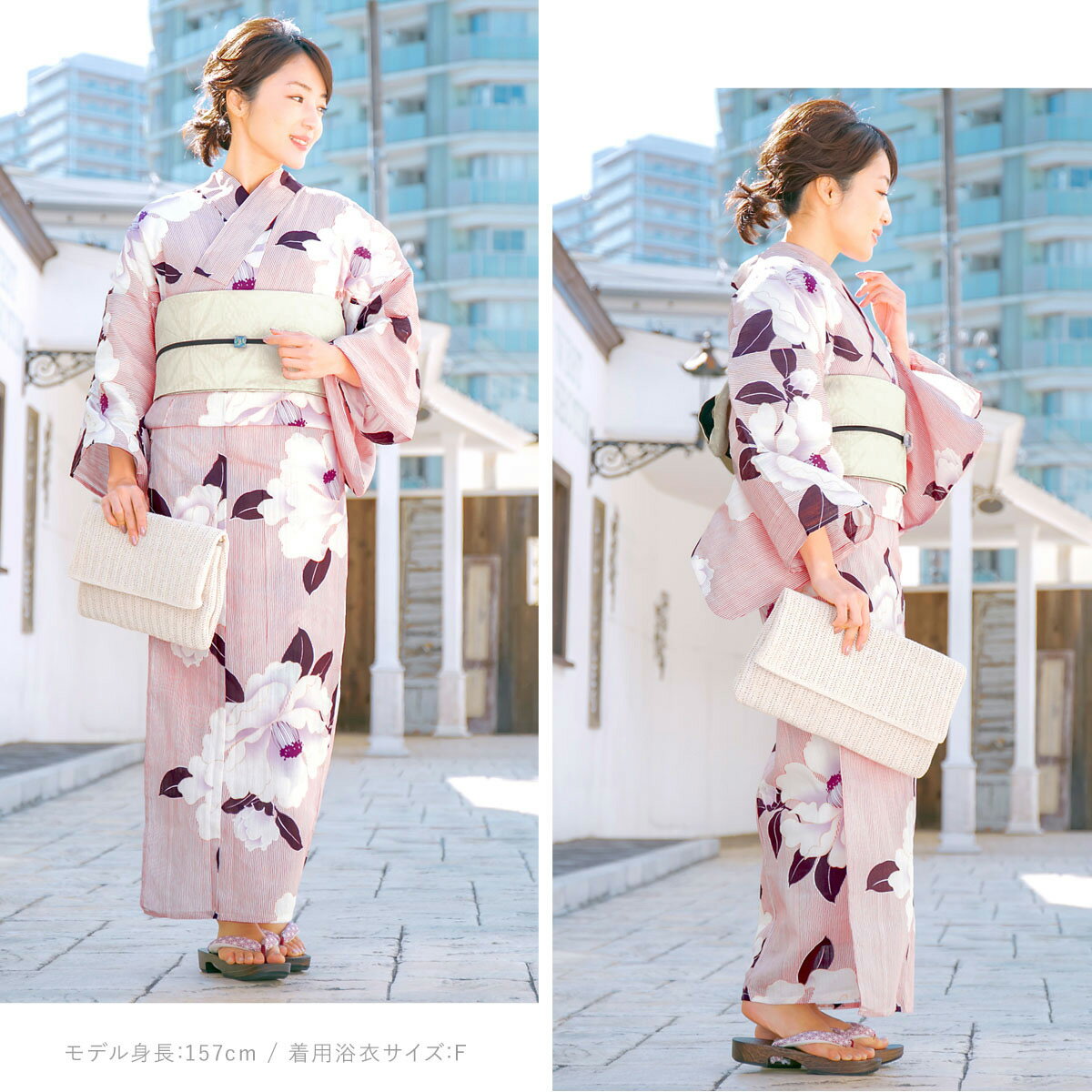 estimated delivery.■浴衣(適応身長:身丈の5cm前後)(素材)表地:綿85% 麻15% 裏地:なし身丈袖丈裄丈Sサイズ約155cm約47cm約65cmフリーサイズ約165cm約49cm約68cm■帯(素材)表地:ポリエステル100% 裏地:なし幅長さサイズ約16.5cm約400cm■下駄(適応サイズ:23.0〜24.5cm)(素材)鼻緒:ポリエステル 台:桐幅長さ高さサイズ約8cm約24.2cm約3.5cmこちらの商品は、浴衣・帯・下駄の3点セットです。