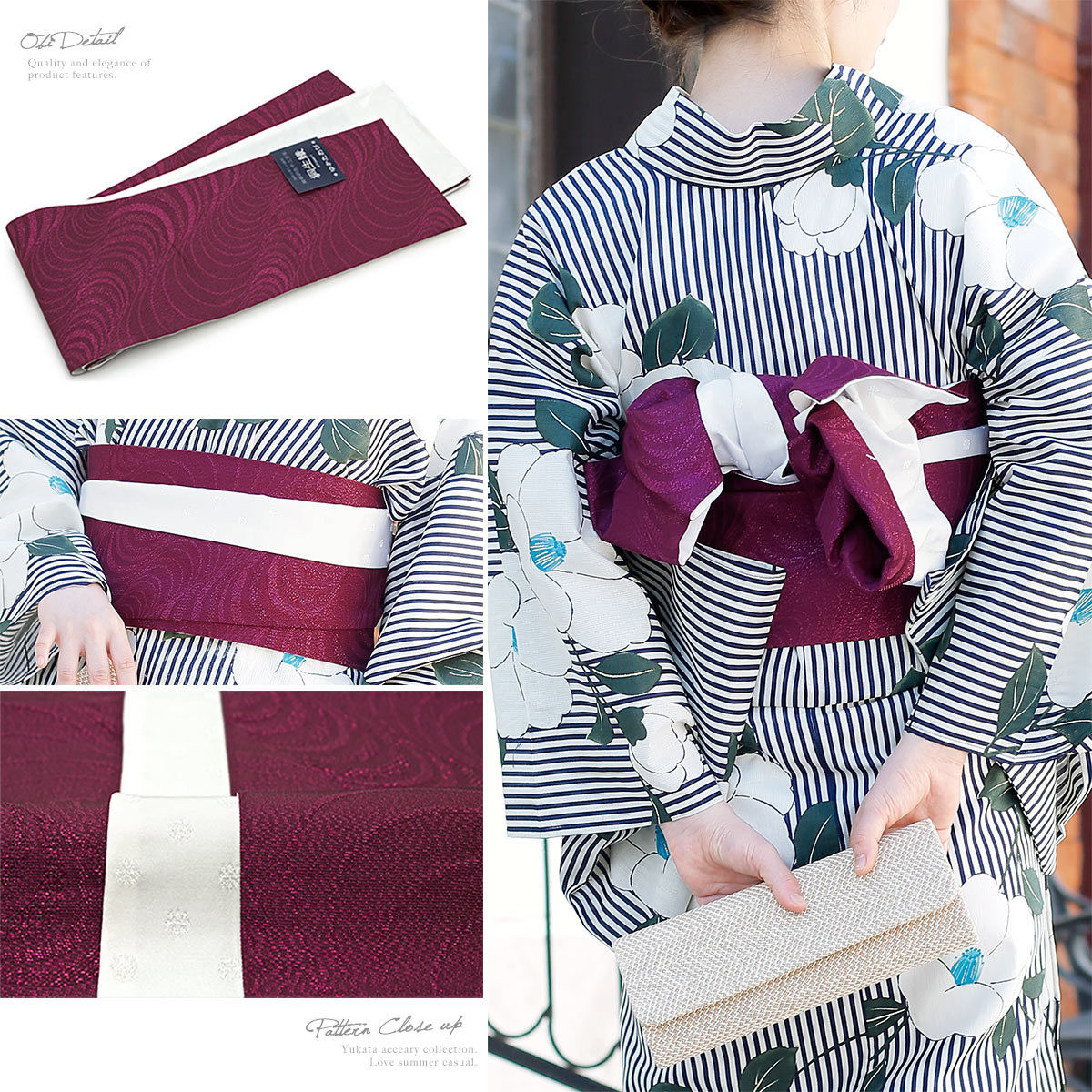 【10%OFF!~6/11 1:59】浴衣 セット レディース レトロ 浴衣セット 大人 3点セット 紺 ネイビー 紫系 椿 つばき 花 縞 ストライプ ラメ 綿麻 半幅帯 女性 ボヌールセゾン フリー 【送料無料】【あす楽対応】【浴衣 セット】