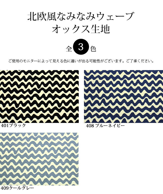 【メール便2mまで】北欧風なみなみウェーブオックス生地(1148) | モノトーン 女の子 男の子 生地 綿 手づくり ハンドメイド 手作り ウェアー 小物 バッグ 生地 オックス 布地 綿100% バッグ レッスンバッグ 布 雑貨 メール便OK